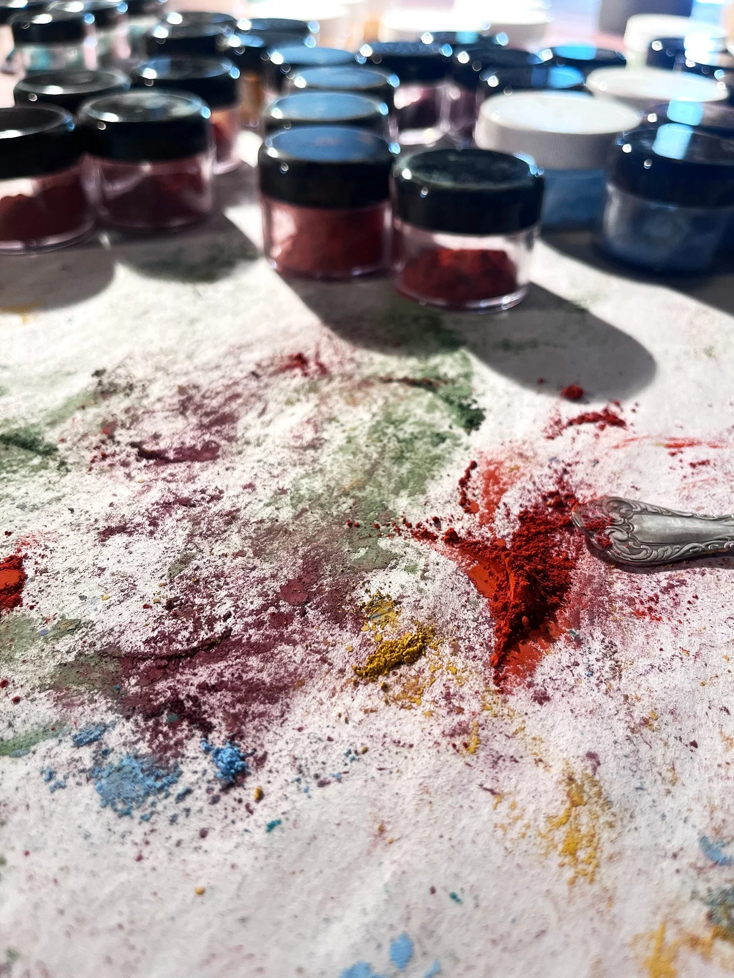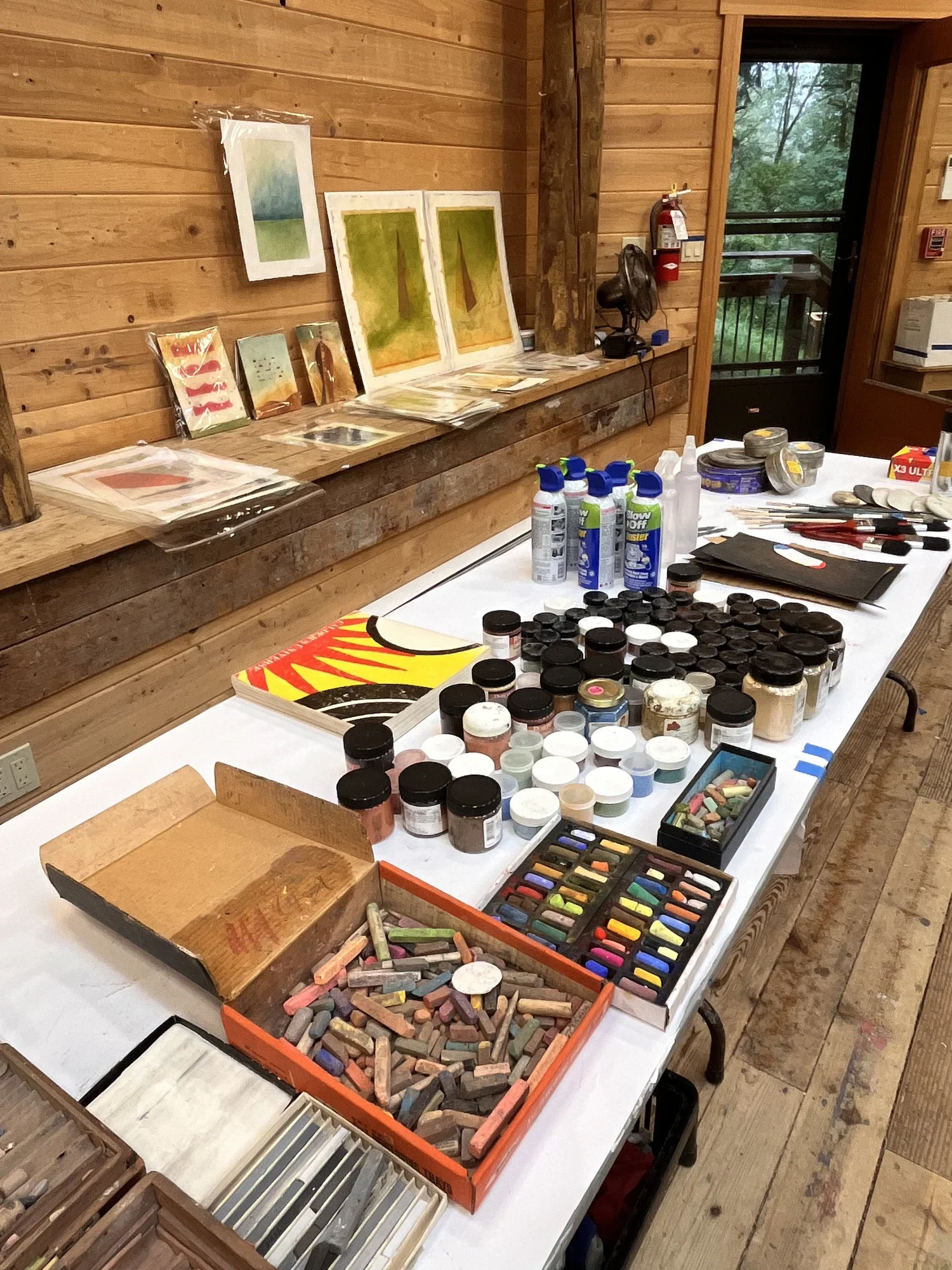 This workshop at the beautiful Menucha Retreat Center in the Columbia Gorge offers an immersive introduction to Waxed Powder Painting, a luminous medium combining powdered pigments and beeswax on paper. Participants move through a creative arc that begins with sharpening perception and developing abstraction and leads into full waxed-powder expression.